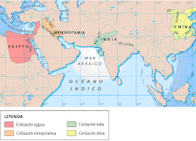 - Mesopotamia, con los ríos Tigris y Eúfrates,